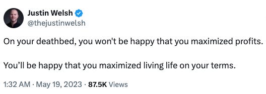 Justin Welsh has a really good take on optimisation for the ‘good life’.