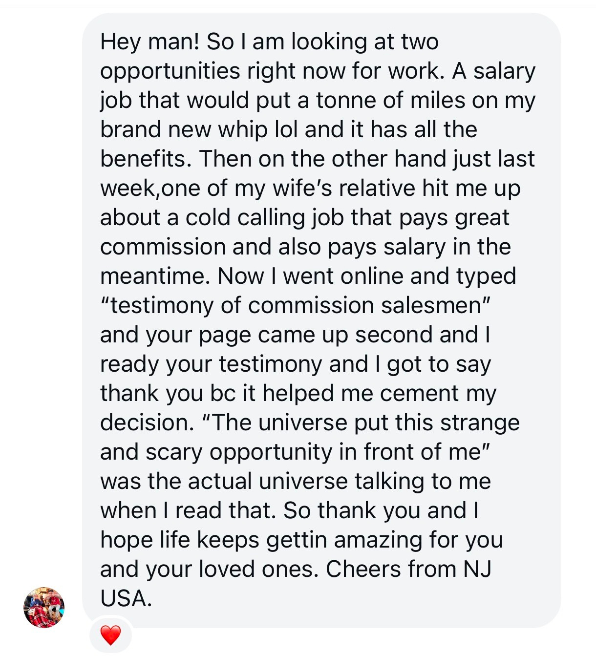 The joy of receiving a message like that from a stranger is unmatched.