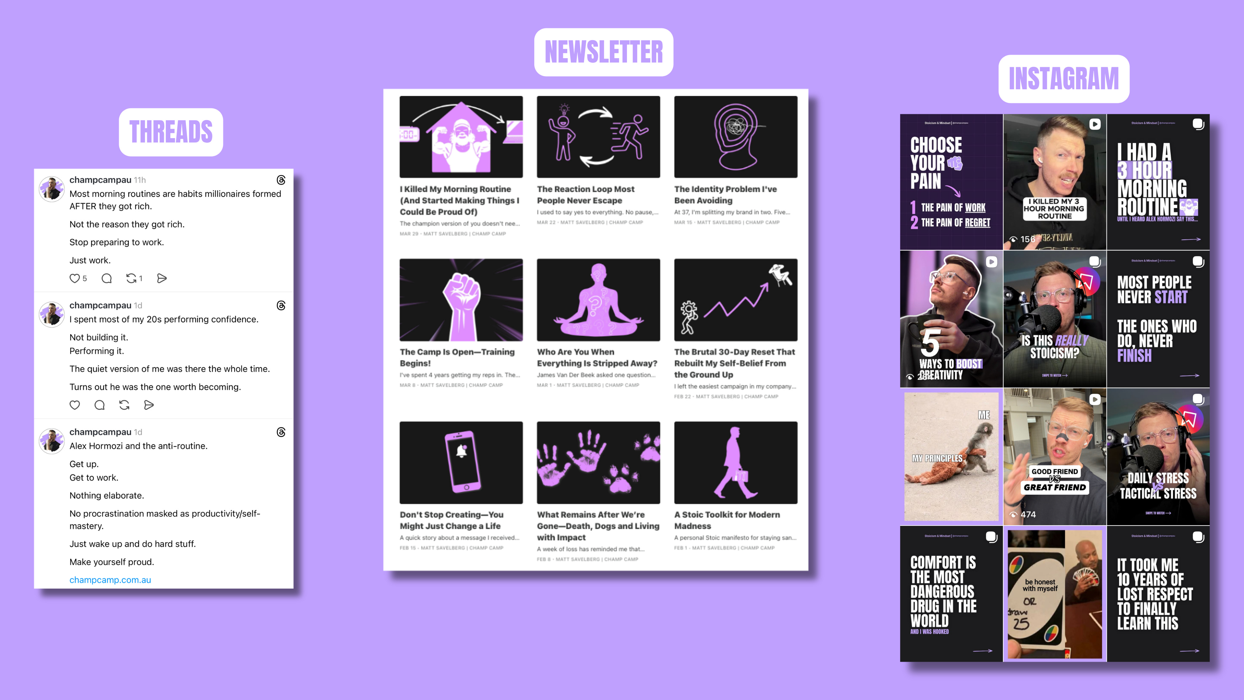 2025: Leading up to the release of my CHAMP CAMP EP last year, I was really getting on a roll. Shipping daily DIY indie rapper content and showcasing my music and creative process. I was regaining my identity as a rapper, but when the EP was released, and I wanted to talk about Stoicism, it felt weird and forced, and I second-guessed myself until I stopped creating entirely.